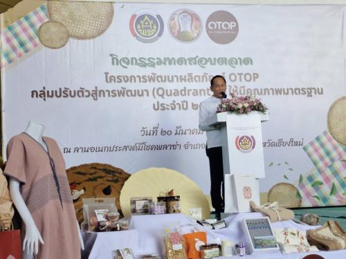 นายบุญลือ ธรรมธรานุรักษ์ รองผู้ว่าราชการจังหวัดเชียงใหม่ เป็นประธานในพิธีเปิดกิจกรรมทดสอบตลาด ภายใต้โครงการพัฒนาผลิตภัณฑ์ OTOP กลุ่มปรับตัวสู่การพัฒนา (Quadrant D) ให้มีคุณภาพมาตรฐาน ประจำปี 2569 โดยมี นางณิชพลัฏฐ์ วรรณคำ พัฒนาการจังหวัดเชียงใหม่ เป็นผู้กล่าวรายงาน พร้อมด้วยหัวหน้าส่วนราชการระดับจังหวัด ผู้อำนวยการกลุ่มงาน พัฒนาการอำเภอ เจ้าหน้าที่พัฒนาชุมชน และผู้ผลิต ผู้ประกอบการ OTOP เข้าร่วมงาน